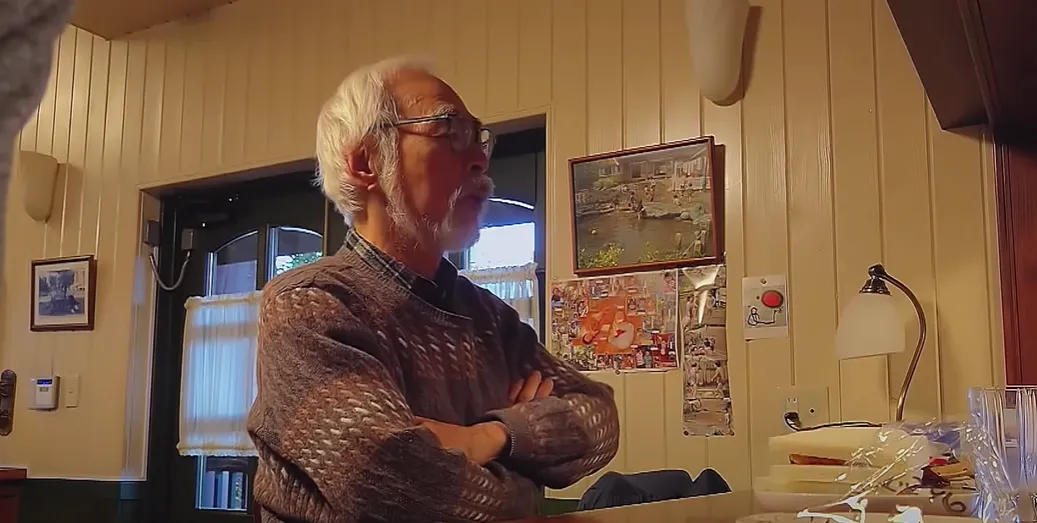 This documentary's personal perspective, which shows Miyazaki outside of the studio, is what makes it unique. It starts with him in a bathhouse, signifying vulnerability, and then shows him going about his daily business, such as exchanging jelly beans with his grandchildren, playing ping-pong, or burning rice cakes. By shedding light on his creative depth, these insights demythologize the renowned director and make him more approachable.